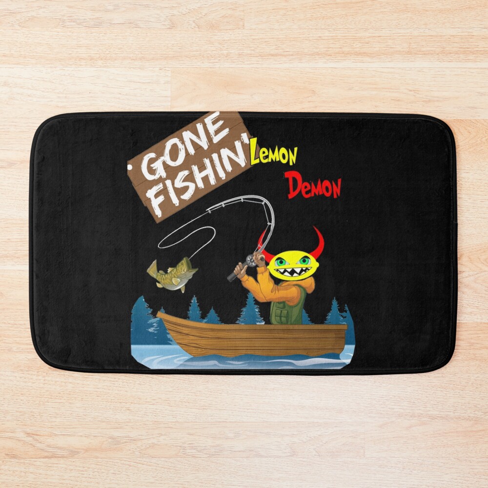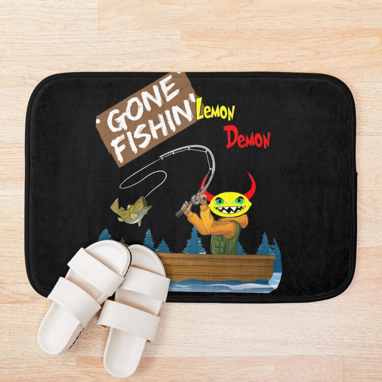 Lemon Demon Has Gone Fishing Bath Mat